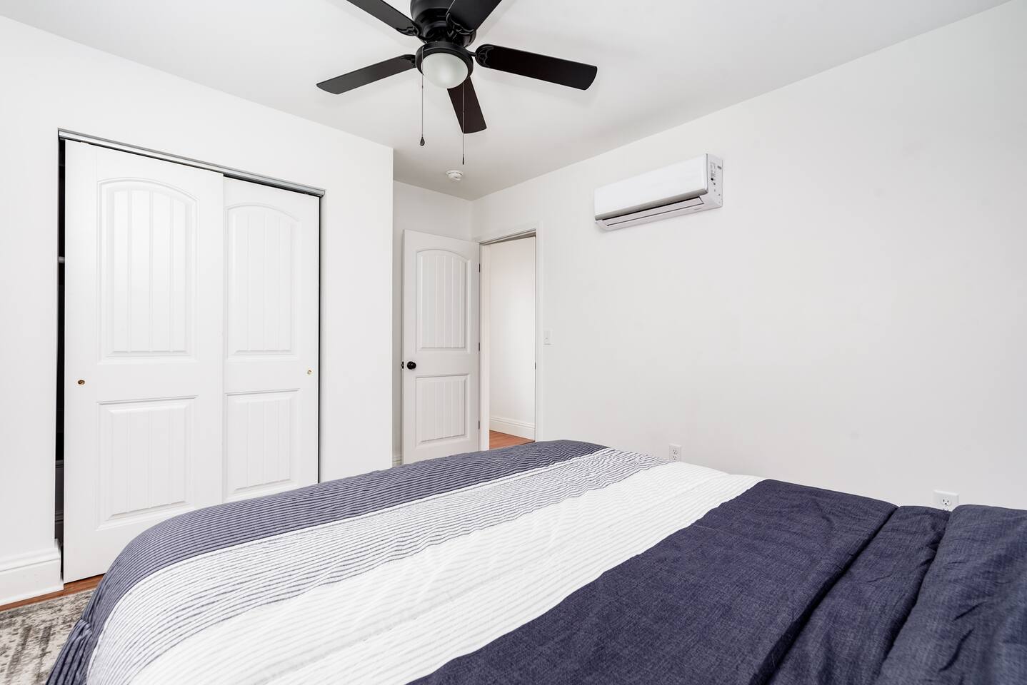 The home is set on a quite street and is facing an industrial building. It has the living room, dining room, and kitchen all on the main floor with the two bedrooms and the bathroom on the second floor. The home has a split HVAC system which gives you complete control, allowing each room to set their own unique temperature. In the rear of the home you will find a small deck and yard for you to enjoy. Behind the small fenced yard is a seperate small home that we rent separate from this one.