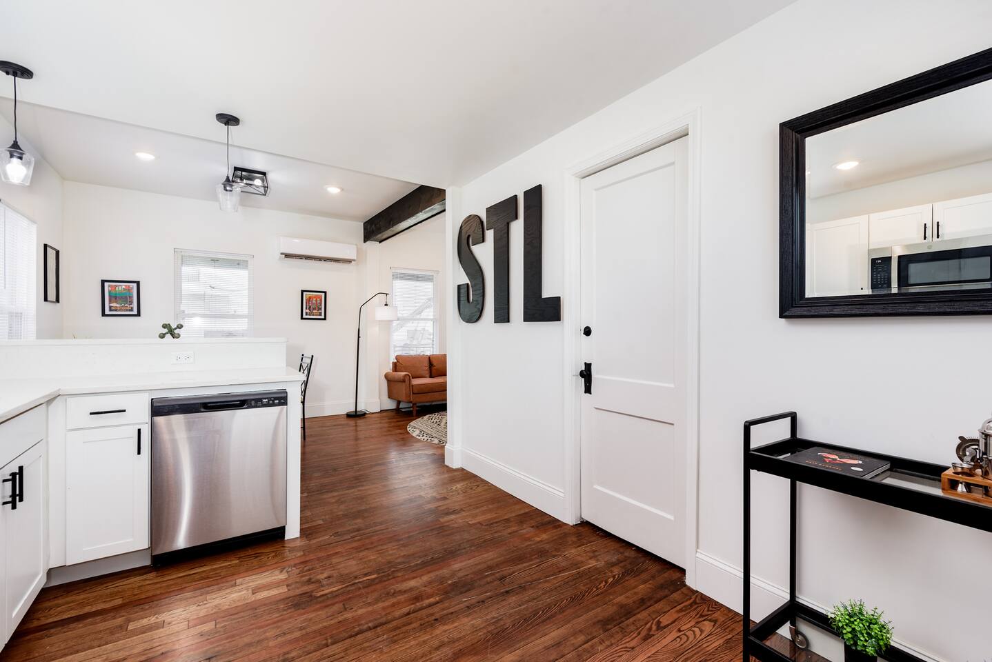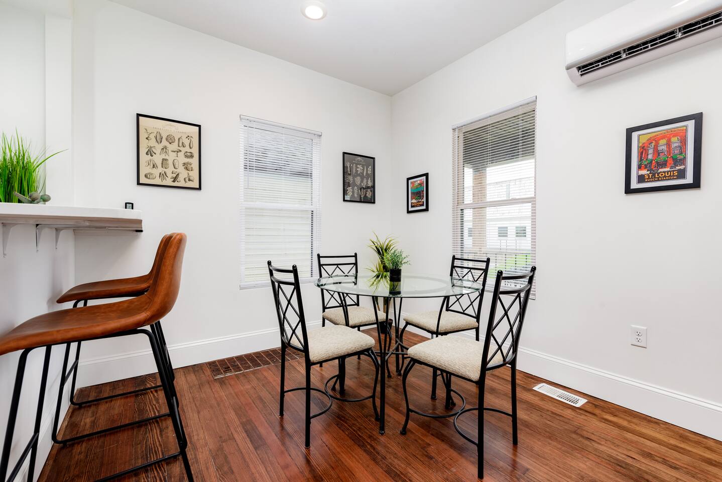 This home is located facing an industrial building so the view is not the best but this does keep the area very quite and private. The location is excellent for accessing many of the best food and entertainment options that St. Louis has to offer! We welcome cat's and dogs with a cost of $150/per pet per stay and an additional $50/month for each pet for long term stays. If you are traveling with more than one pet, please be aware that you will have to pay this fee for any additional pets beyond the first on the day of check in.