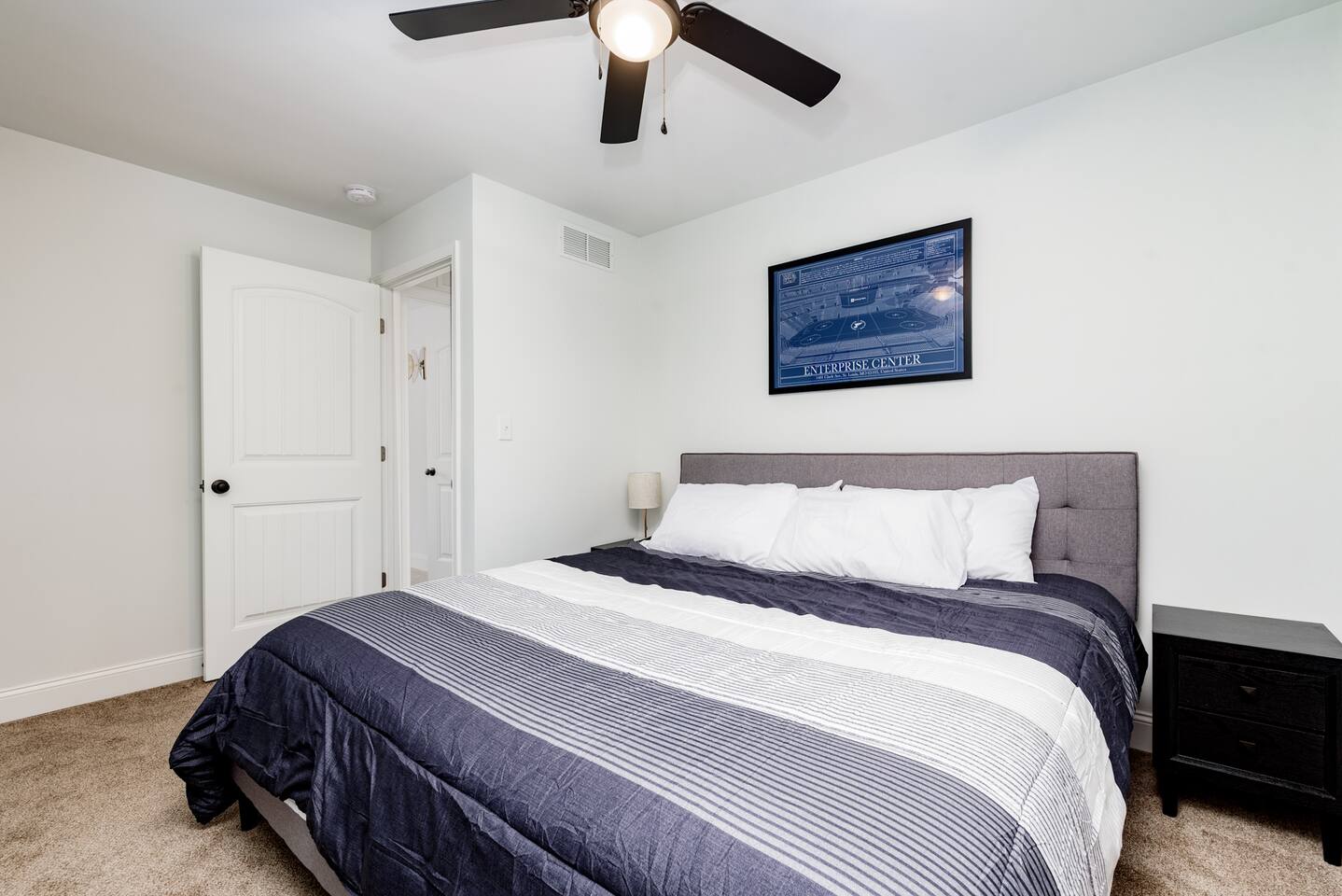 Welcome to our stunning short-term rental home! This spacious abode boasts 3 bedrooms, tall ceilings, and modern finishes, providing a stylish & comfortable stay. Located within walking distance of vibrant Tamm Avenue in St. Louis, you'll have easy access to a plethora of shops, restaurants, and bar options. Step inside and be greeted by the grandeur of tall ceilings that create a ton of natural light. With ample space in each of the 3 bedrooms, you & your guests can enjoy privacy & relaxation!